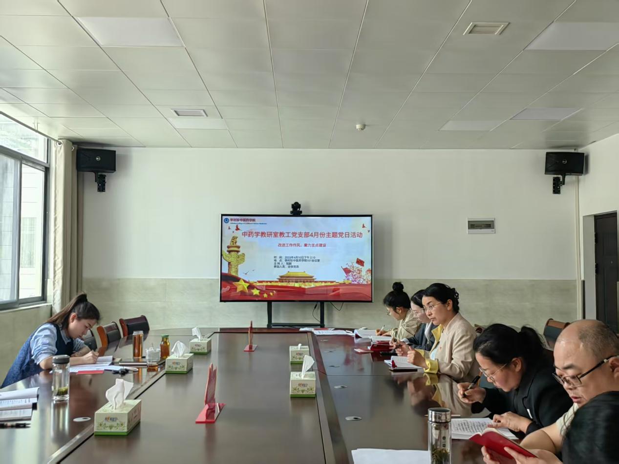2025年4月10日下午2:10在李时珍中医药学院101会议室,中药学教研室教工党支部举行了主题为“改进工作作风,聚力支点建设”的主题党日活动,由支部书记陆毅主持,全体党员参加。
