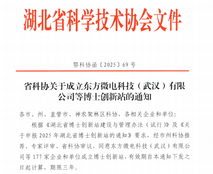 近日,湖北省科协印发《省科协关于成立东方微电科技(武汉)有限公司等博士创新站的通知》(鄂科协函〔2025〕69号)。我院张万举教授联合中农华威生物制药(湖北)有限公司成功获批博士创新站。