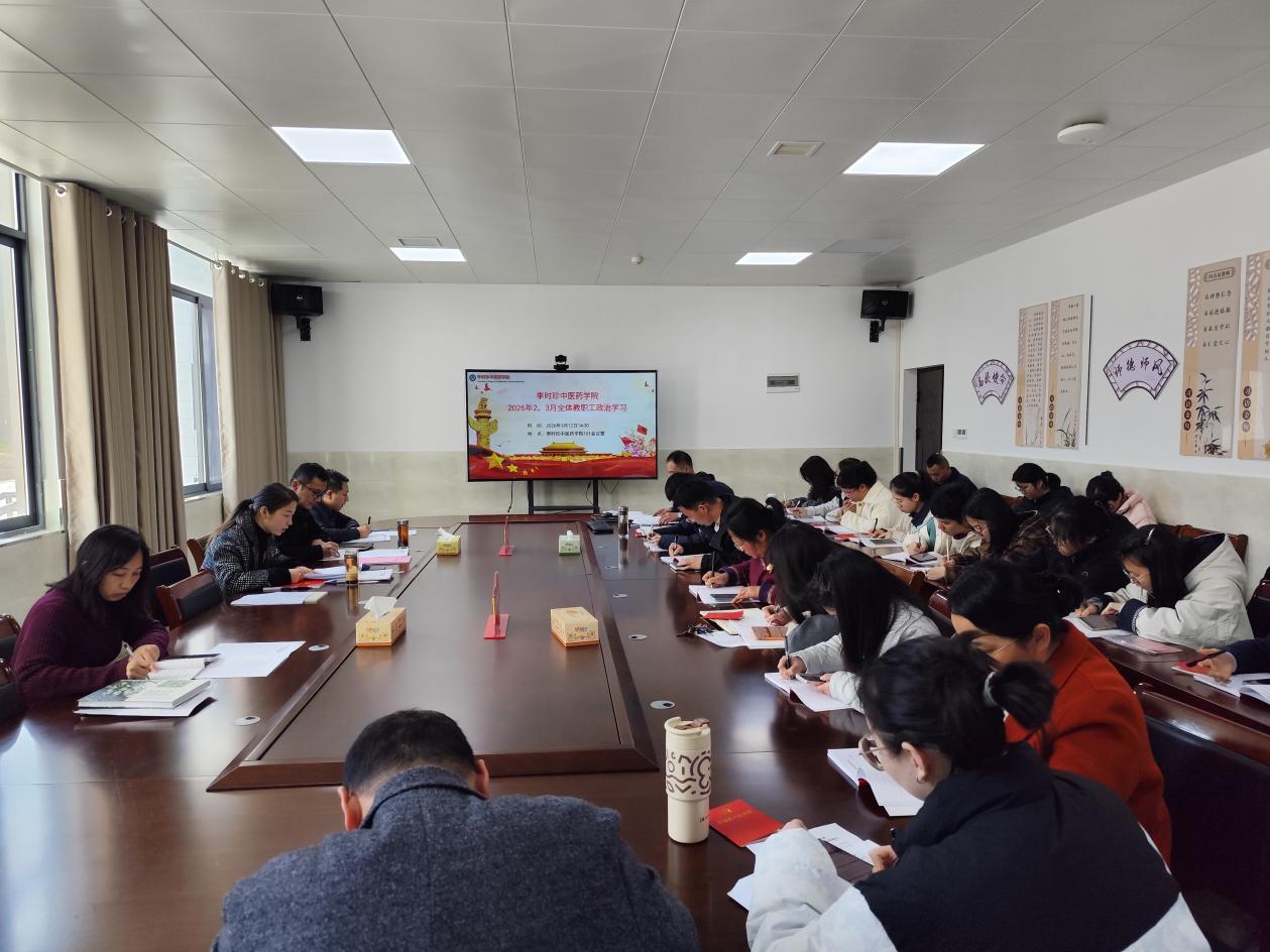 为进一步加强教职工思想政治建设,凝聚奋进力量。3月12日,李时珍中医药学院在学院101会议室开展2026年2、3月教职工政治理论学习。会议由学院党总支书记李争婕主持。